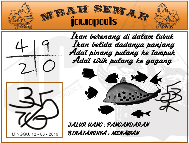 Demikian analisa prediksi togel dari Mbah Semar Hari ini Minggu 12 Juni 2016. Tetap utamakan prediksi anda sendiri.
