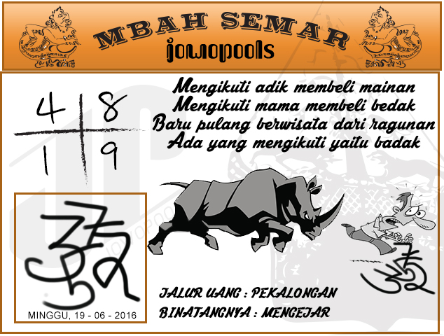 Demikian analisa prediksi togel dari Mbah Semar Hari ini Minggu 19 Juni 2016. Tetap utamakan prediksi anda sendiri.